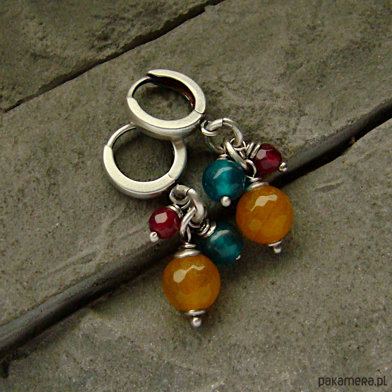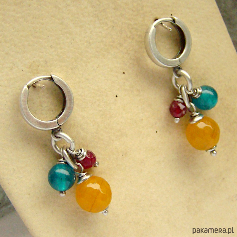 Subtelne i pelne uroku kolczyki na co dzień i nie tylko. Wykonane w całości z oksydowanego srebra próby 925 oraz kulek jadeitu w 3 soczystych kolorach wiekości 8 mm, 6mm i 4 mm. W mojej galerii bransoletka do kompletu. Całkowita długość kolczyków to 3,6 cm. Na życzenie mogę wykonać podobne kolczyki z innymi kamieniami. Ozdobnie zapakowane.