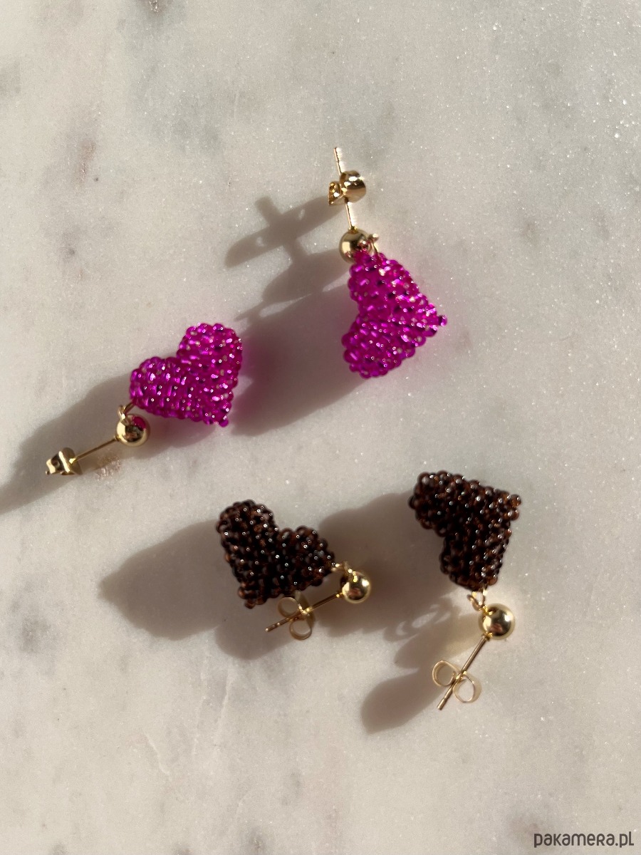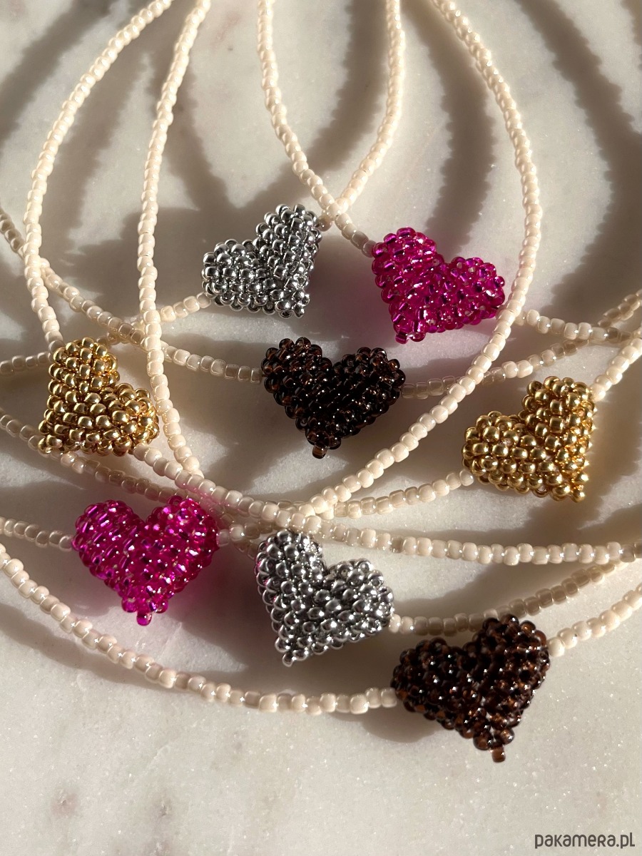 Serce jest ręcznie szyte z najwyższej jakości japońskich, szklanych koralików.