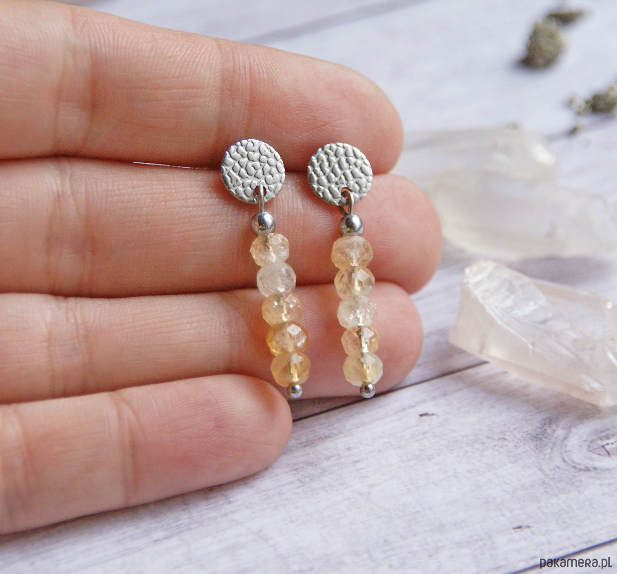 fasetowane oponki cytrynu 5-6mm (barwa niejednolita) i srebrny hematyt połączone z metalowymi elementami ze stali szlachetnej = wszystkie elementy są ANTYALERGICZNE.