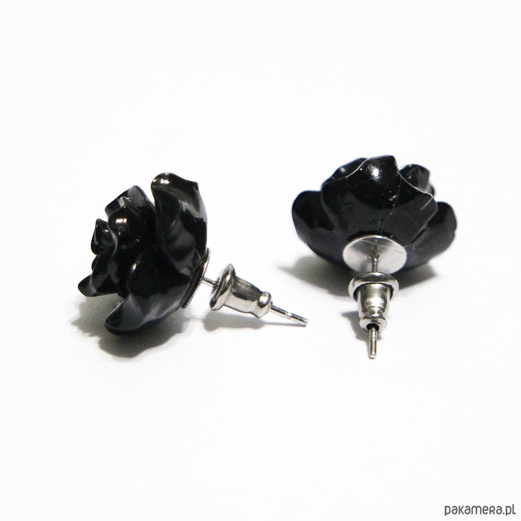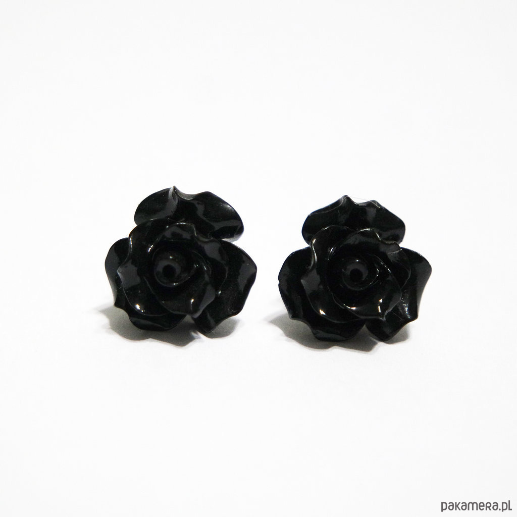Kolczyki - Czarna róża 12 mm - koral