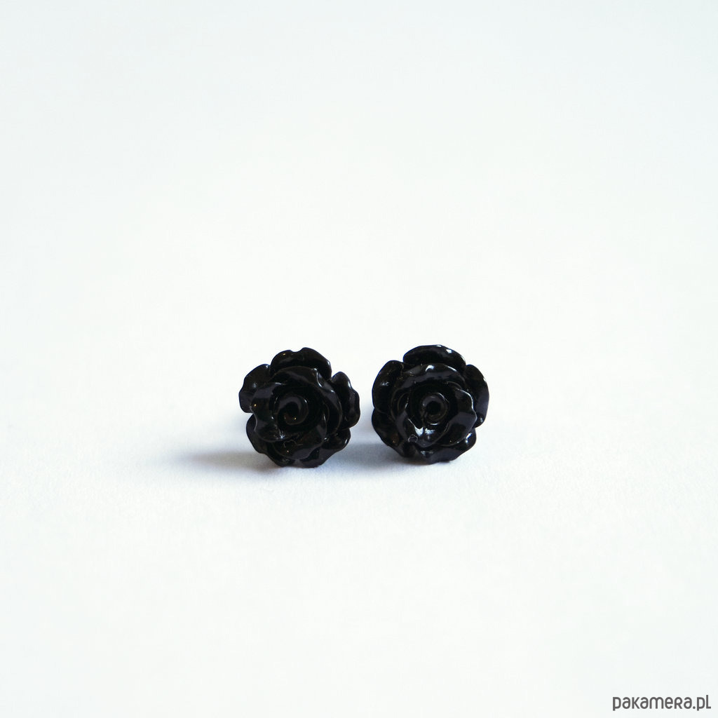 Kolczyki - Czarna różyczka 2 - koral, mini