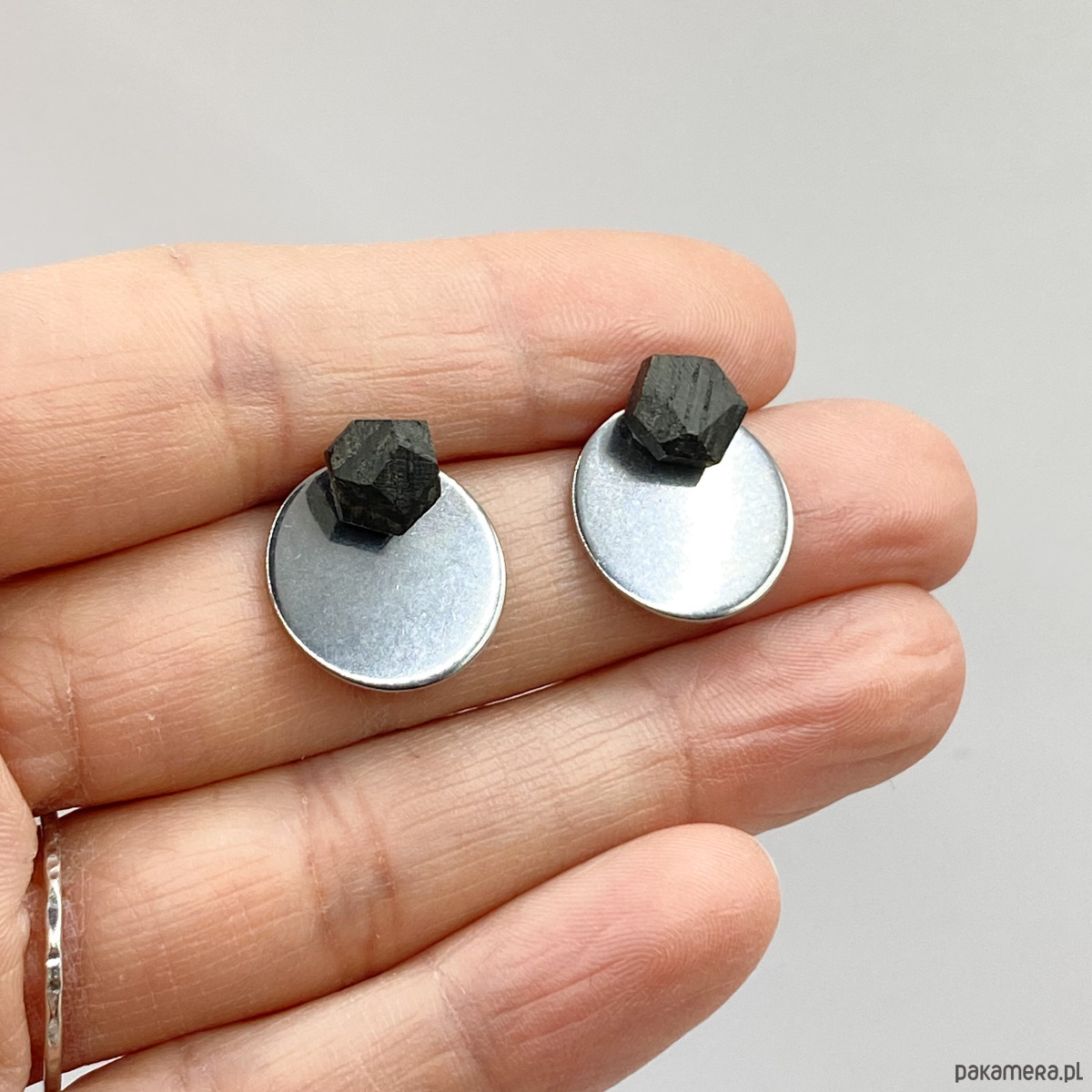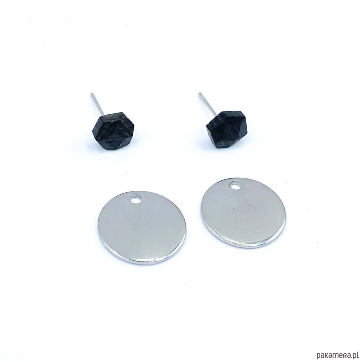 Dodatkiem do kolczyków jest stalowa blaszka, w odcieniu srebra, która tak, jak w przypadku kolorowych niedoparków, może zostać zdjęta/zdemontowana ze sztyftu kolczyka.
