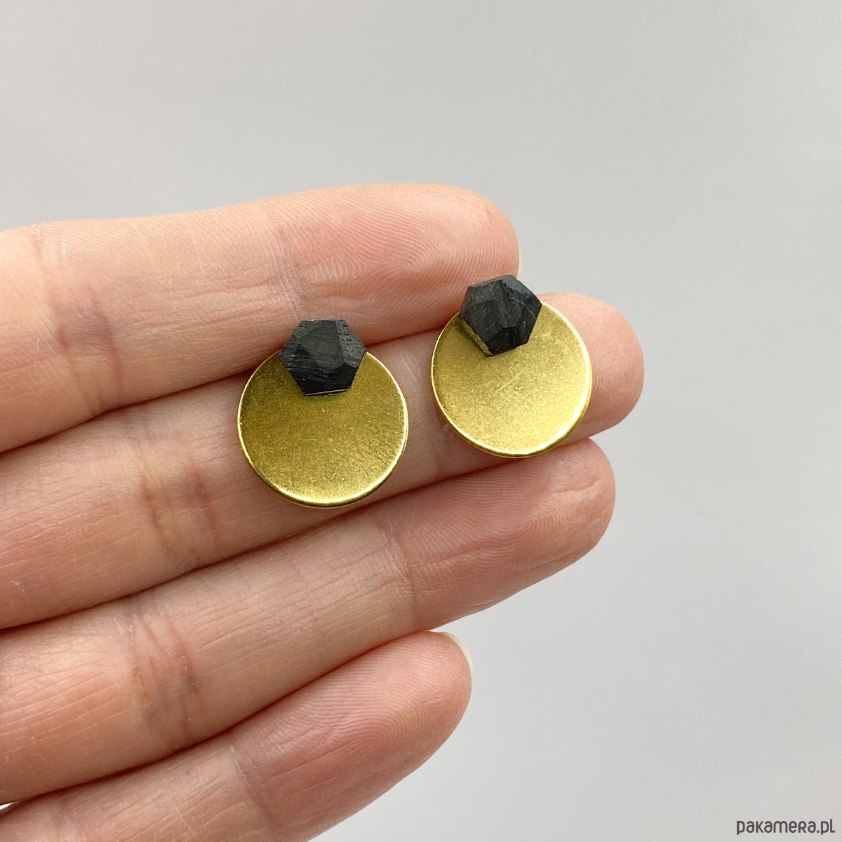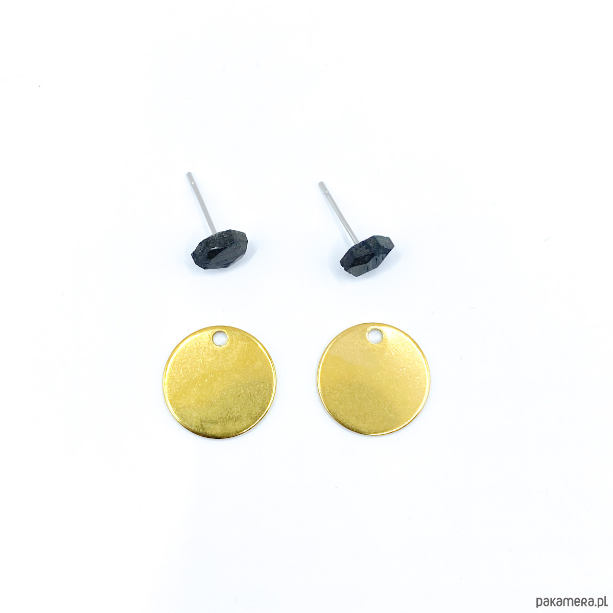 Dodatkiem do kolczyków jest stalowa blaszka, w odcieniu złota, która tak, jak w przypadku kolorowych niedoparków, może zostać zdjęta/zdemontowana ze sztyftu kolczyka.