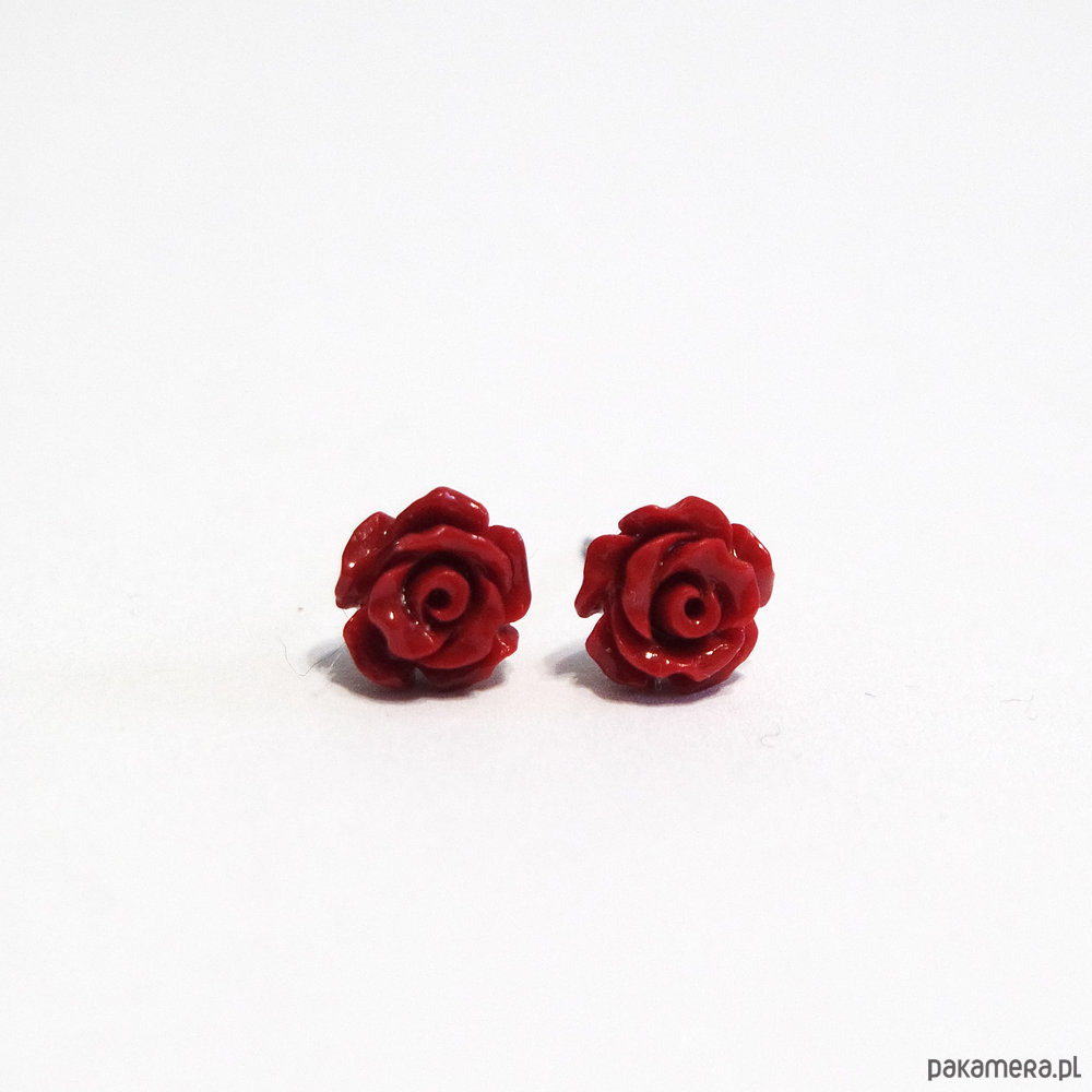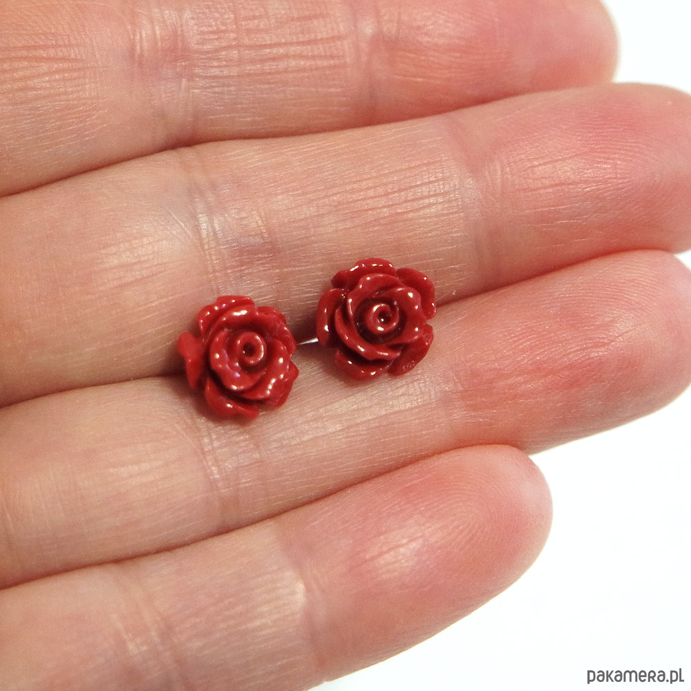 Kolczyki - Czerwona róża - koral, mini