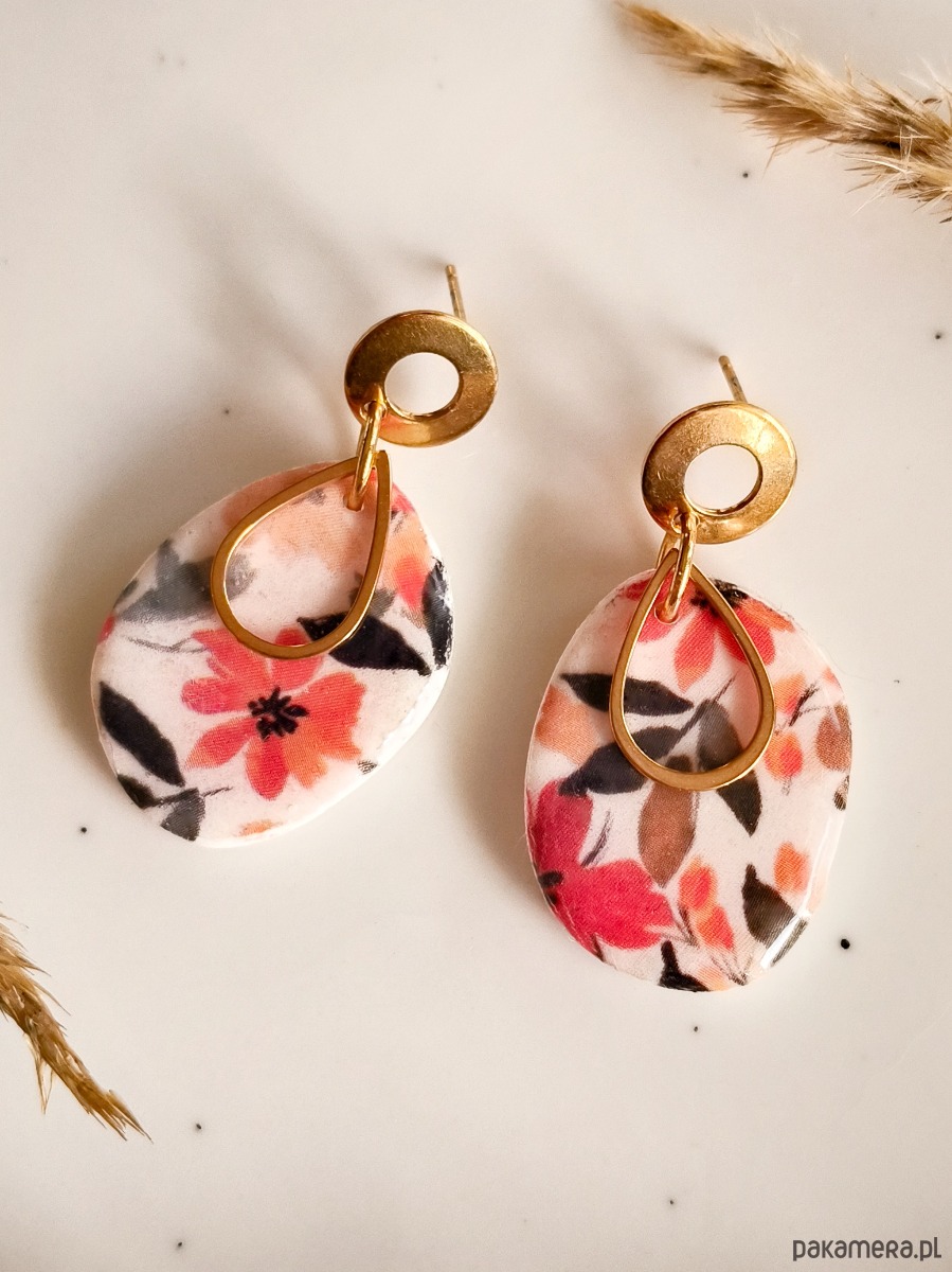 Kolczyki czerwone kwiaty, biżuteria z motywem roślin i kwiatów, boho