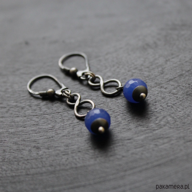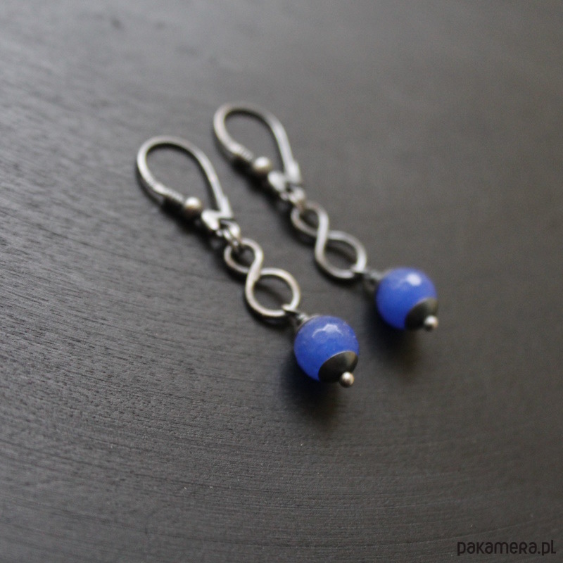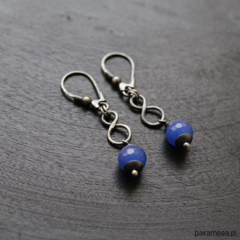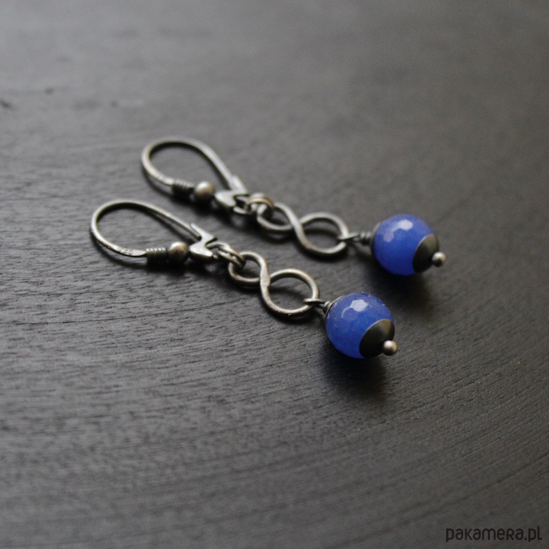 Kolczyki z przepięknymi niebieskim fasetowanym jadeitem wielkości 0,8 cm oraz oksydowanego srebra próby 925.