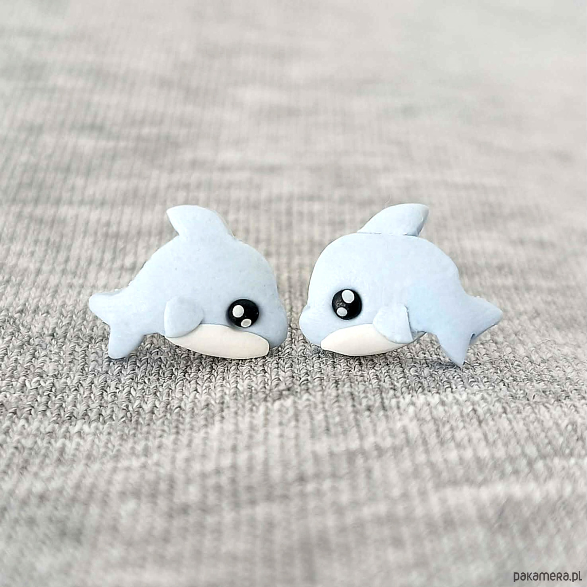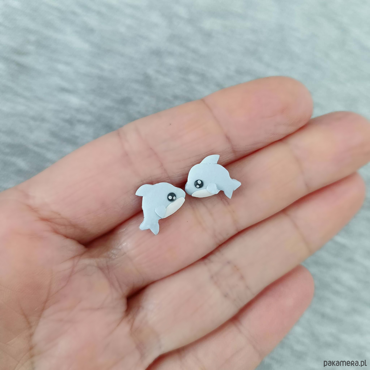 Ręcznie wykonane kolczyki sztyfty w kształcie uroczych delfinów. Delikatny, pastelowy błękit i subtelne detale sprawiają, że są lekkim i radosnym akcentem inspirowanym podwodnym światem.