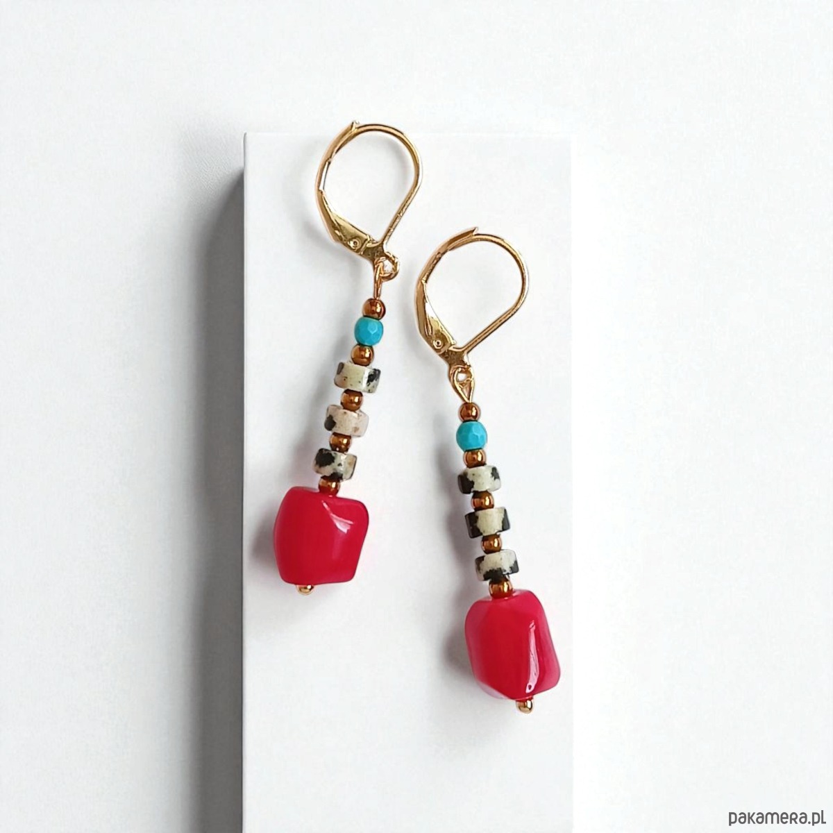 Kolczyki długie : INDIA: jaspis, koral, magnezyt II