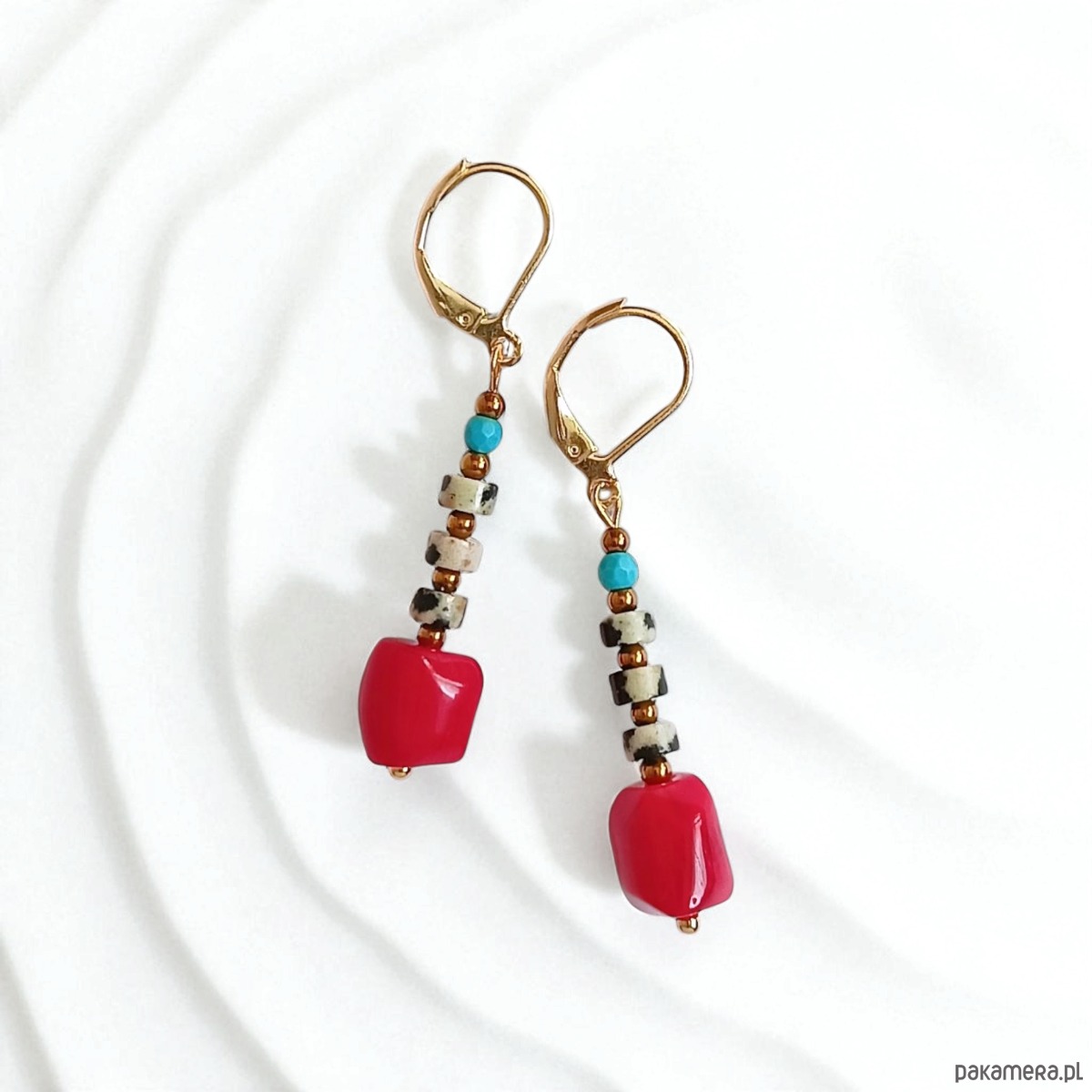 Kolczyki długie : INDIA: jaspis, koral, magnezyt II