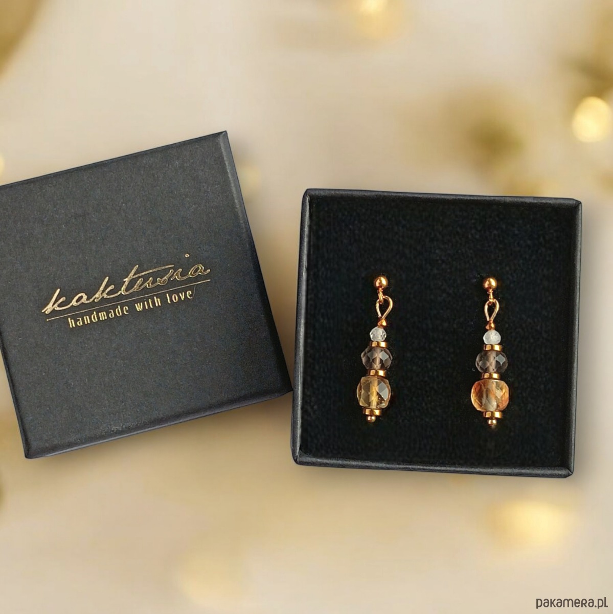 Kolczyki DOBROBYT - cytryn, kwarc dymny, kryształ górski - delikatne
