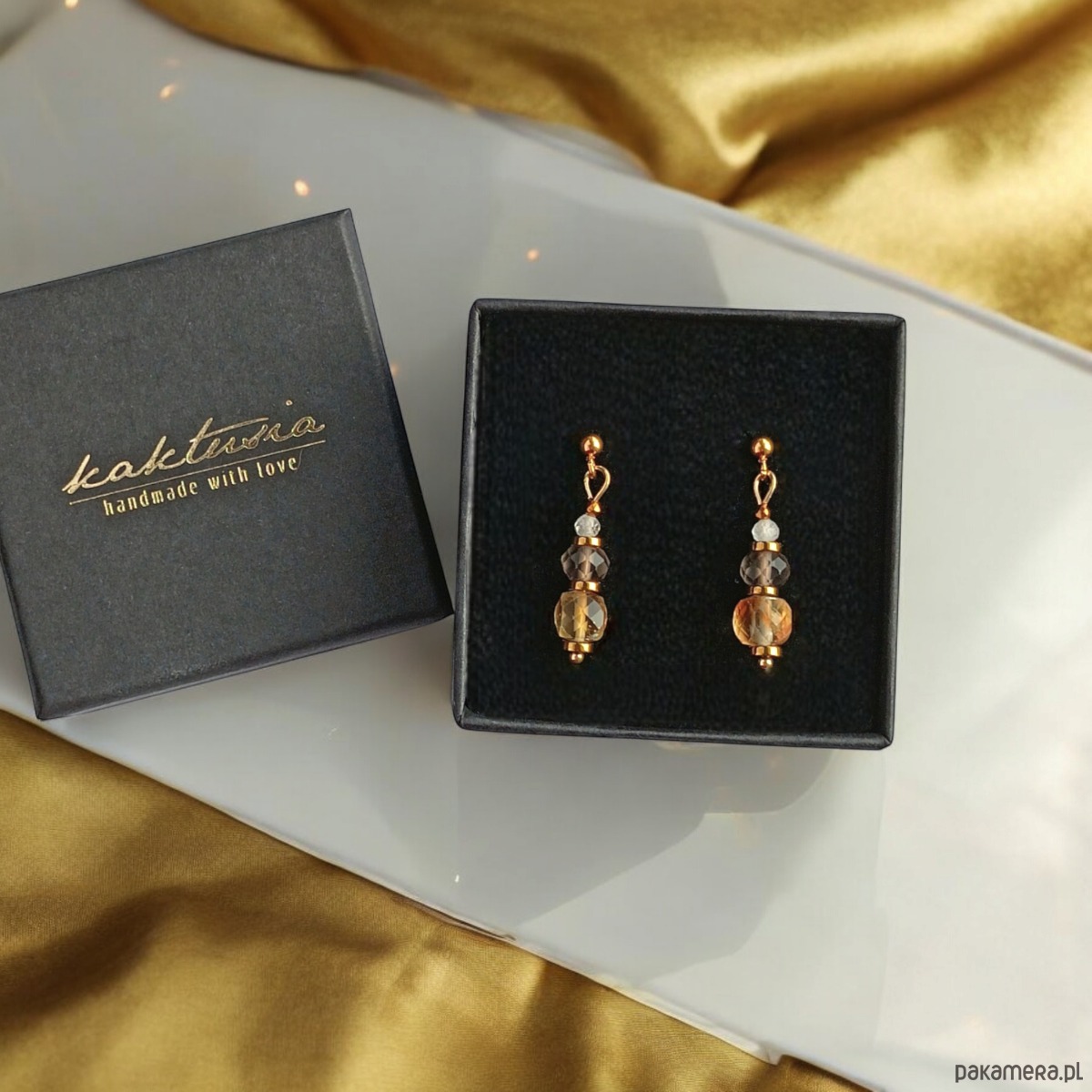 Kolczyki DOBROBYT - cytryn, kwarc dymny, kryształ górski - delikatne