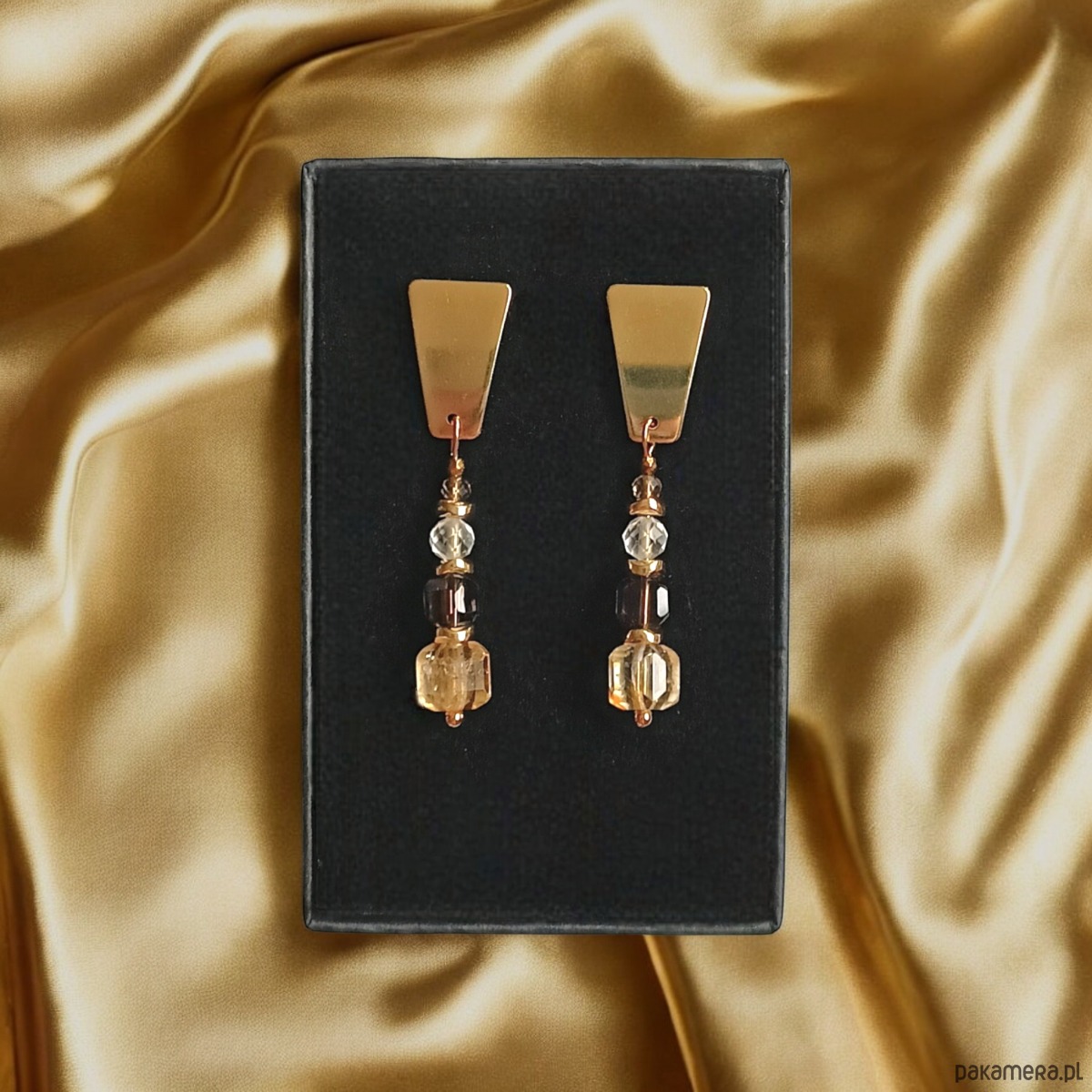 Kolczyki DOBROBYT - cytryn, kwarc dymny, kryształ górski - okazałe