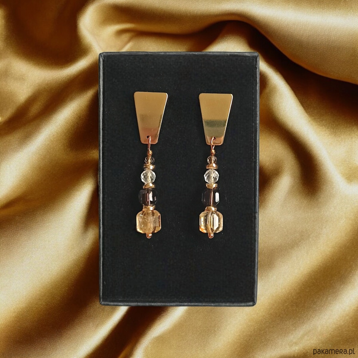 Kolczyki DOBROBYT - cytryn, kwarc dymny, kryształ górski - okazałe