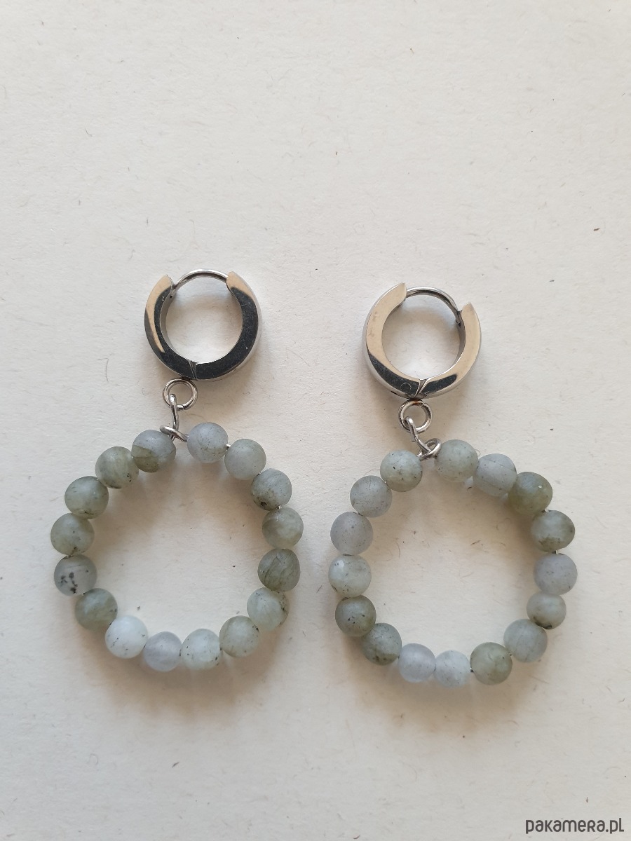 Kolczyki kółka z kolekcji DONUTS. Proste, eleganckie kolczyki i bardzo lekkie ze stali szlachetnej z kamieniami naturalnymi: labradorytem, idealne na wieczorne wyjście, ślub, ale też na co dzień.