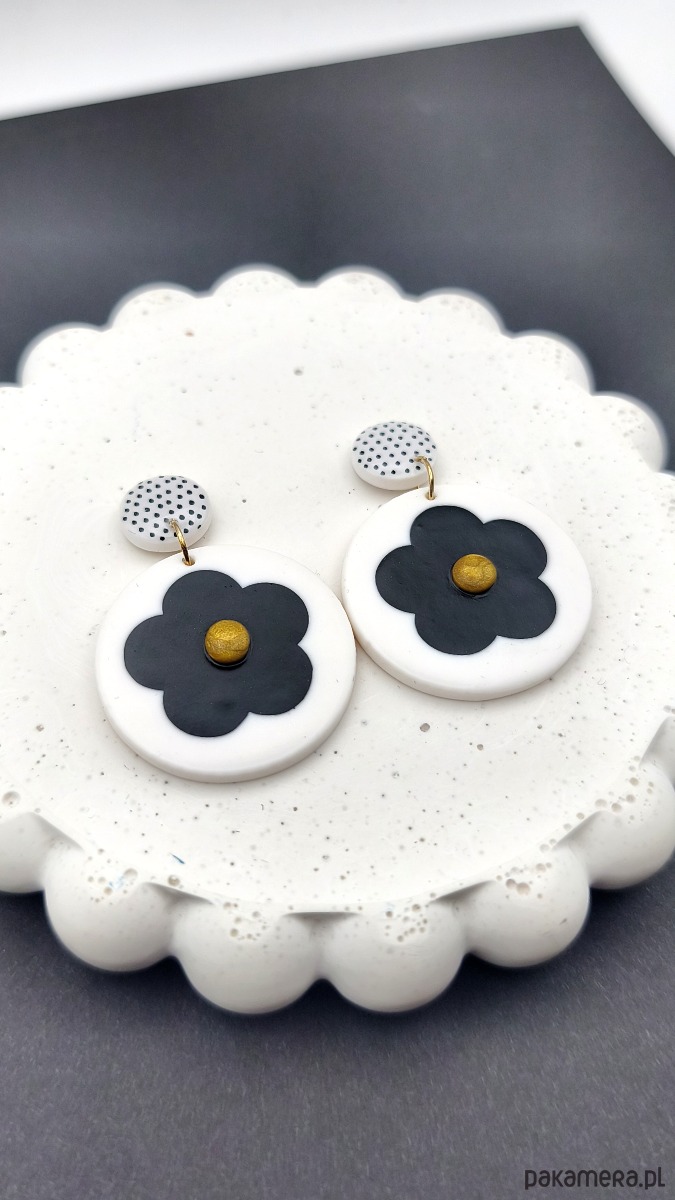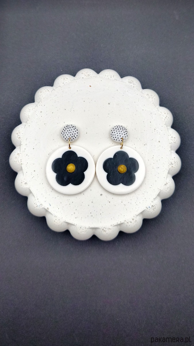 Kolczyki DOTKI z kwiatkiem to miks jaki uwielbiam najbardziej. Kropki, żywica, kwiatek, złoty środek 3D.