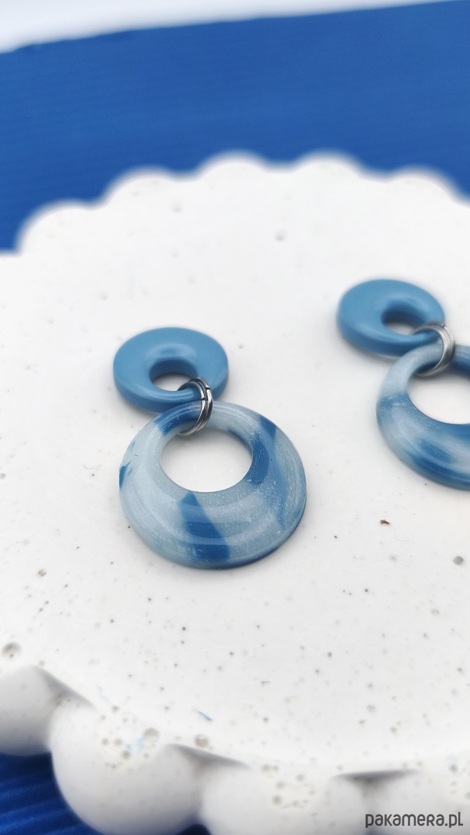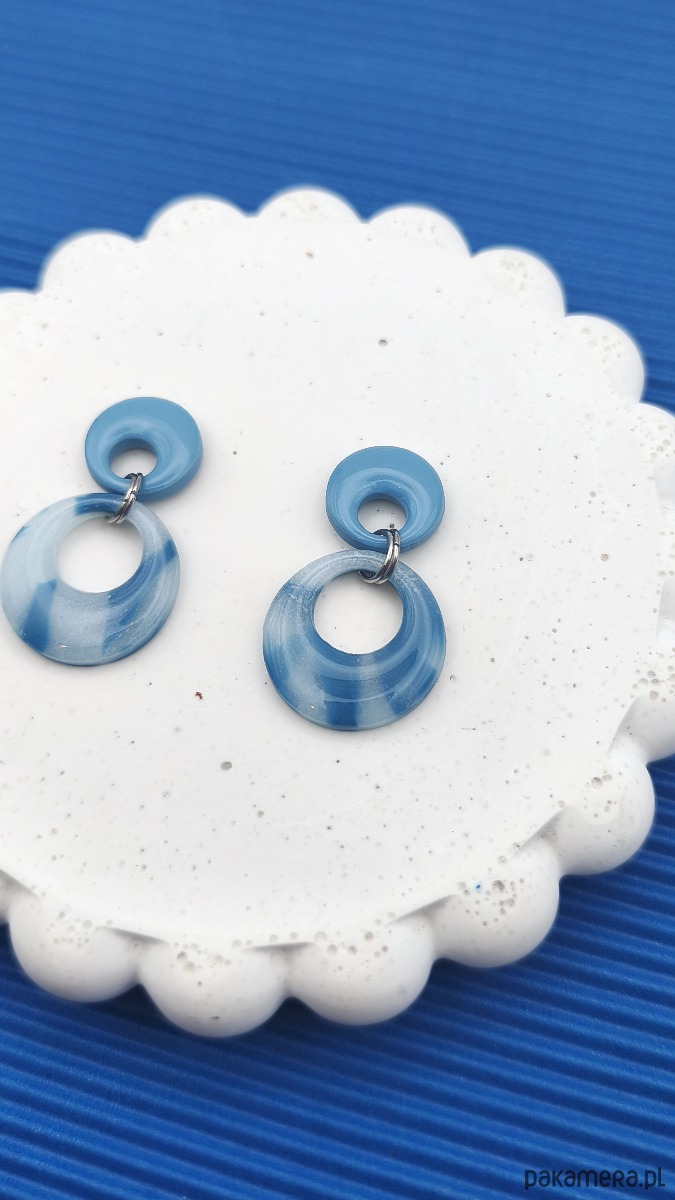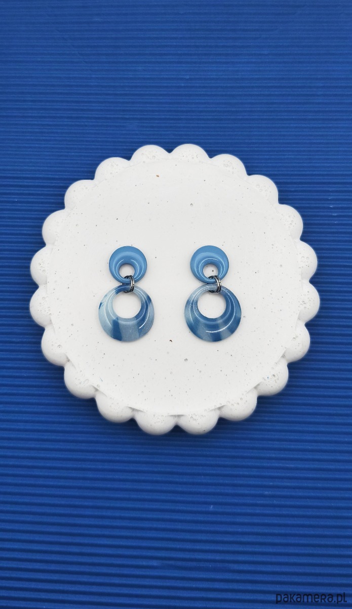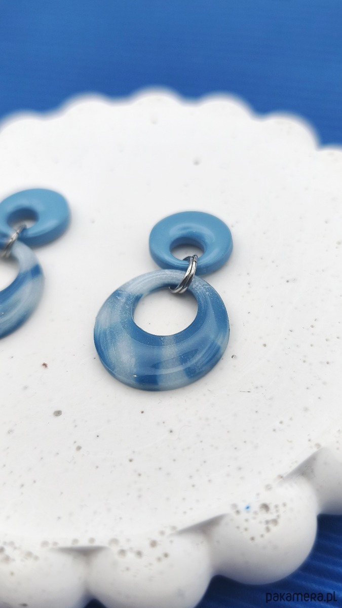 Kolczyki LOOP mają bardzo nowoczesny i graficzny charakter – kształt kojarzący się formą łańcucha. Niebieskie szylkretowe wydanie przypominające chmurkę.