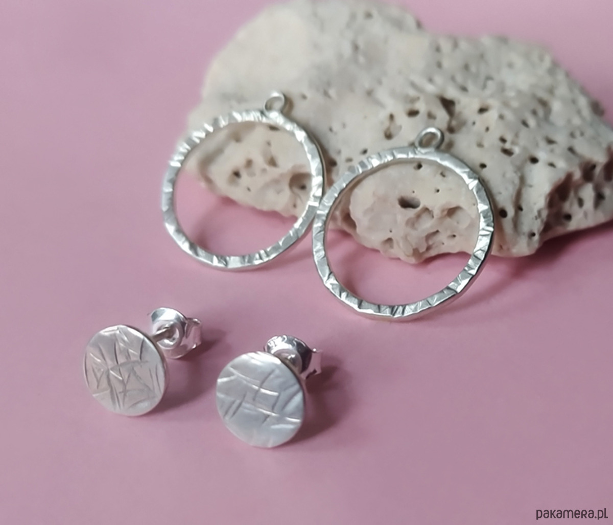 Powierzchnia srebra jest młotkowana i szczotkowana co sprawia, że kolczyki mają ciekawą fakturę.