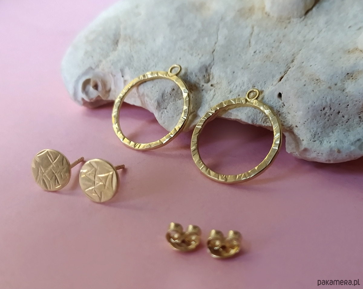 Kolczyki wykonane w całości ręcznie ze srebra pr. 925 pokryte24K złotem.