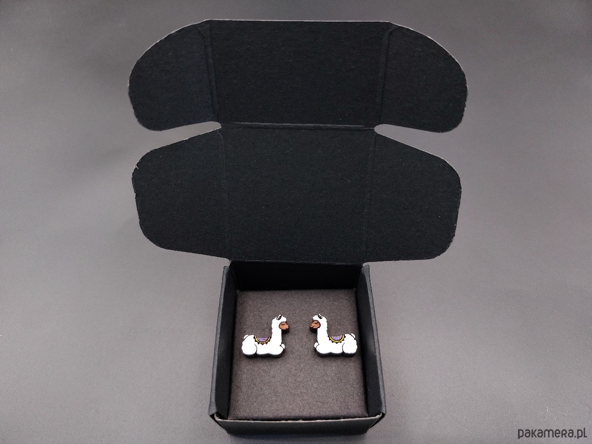 Kolczyki pakuję w kartonowe pudełeczko widoczne na zdjęciu.