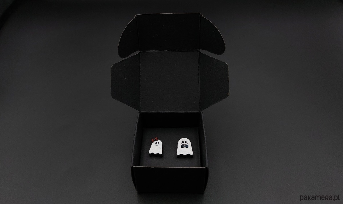 Kolczyki pakuję w kartonowe pudełeczko widoczne na zdjęciu.