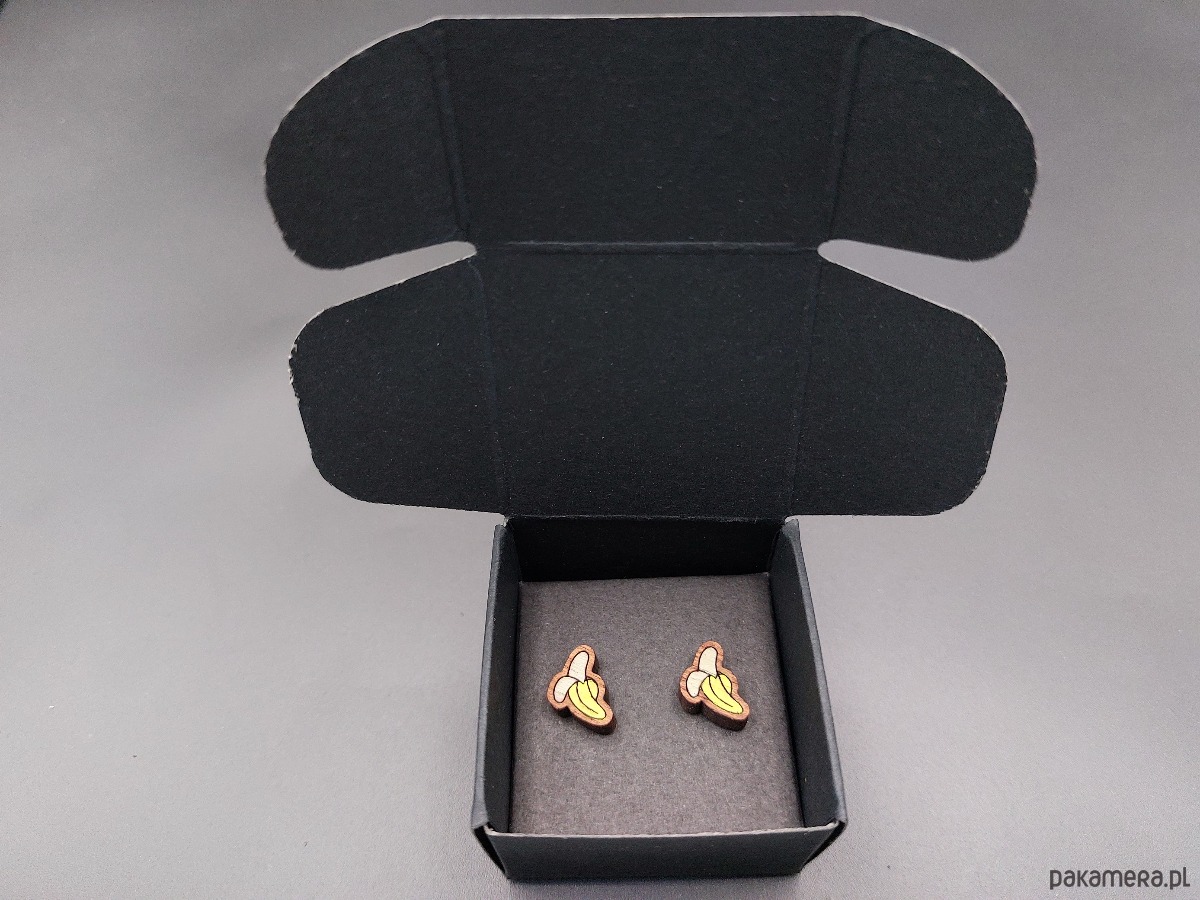 Kolczyki pakuję w kartonowe pudełeczko widoczne na zdjęciu.