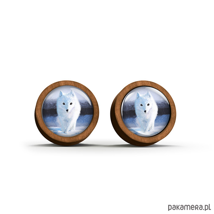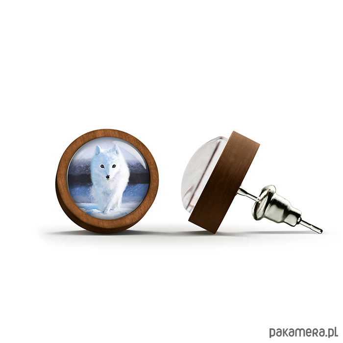 Kolczyki drewniane - Biały lis - sztyfty