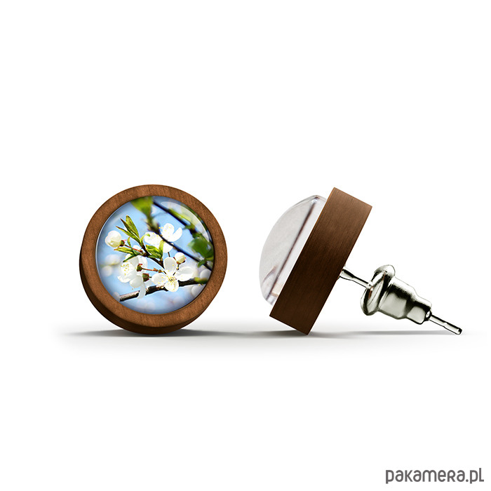 Kolczyki drewniane - Błękitne niebo - sztyfty