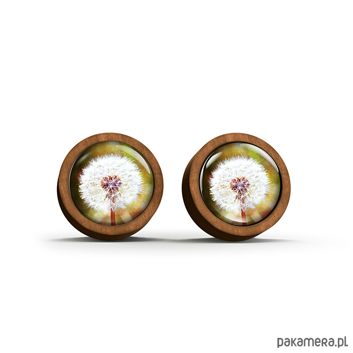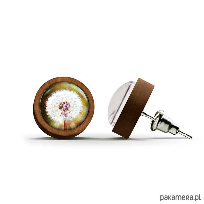 Kolczyki drewniane - Dmuchawiec - sztyfty