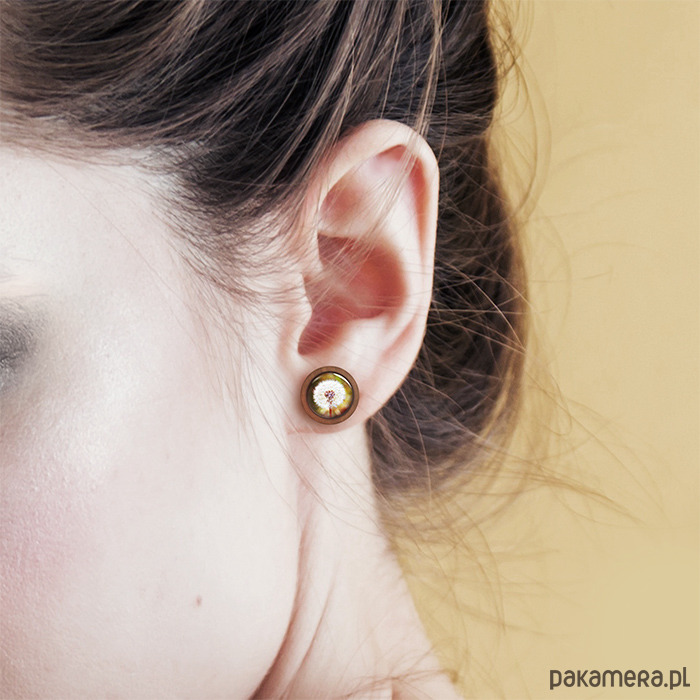 Średnica miniaturki grafiki 12 mm. Średnica kolczyka ok. 15 mm.