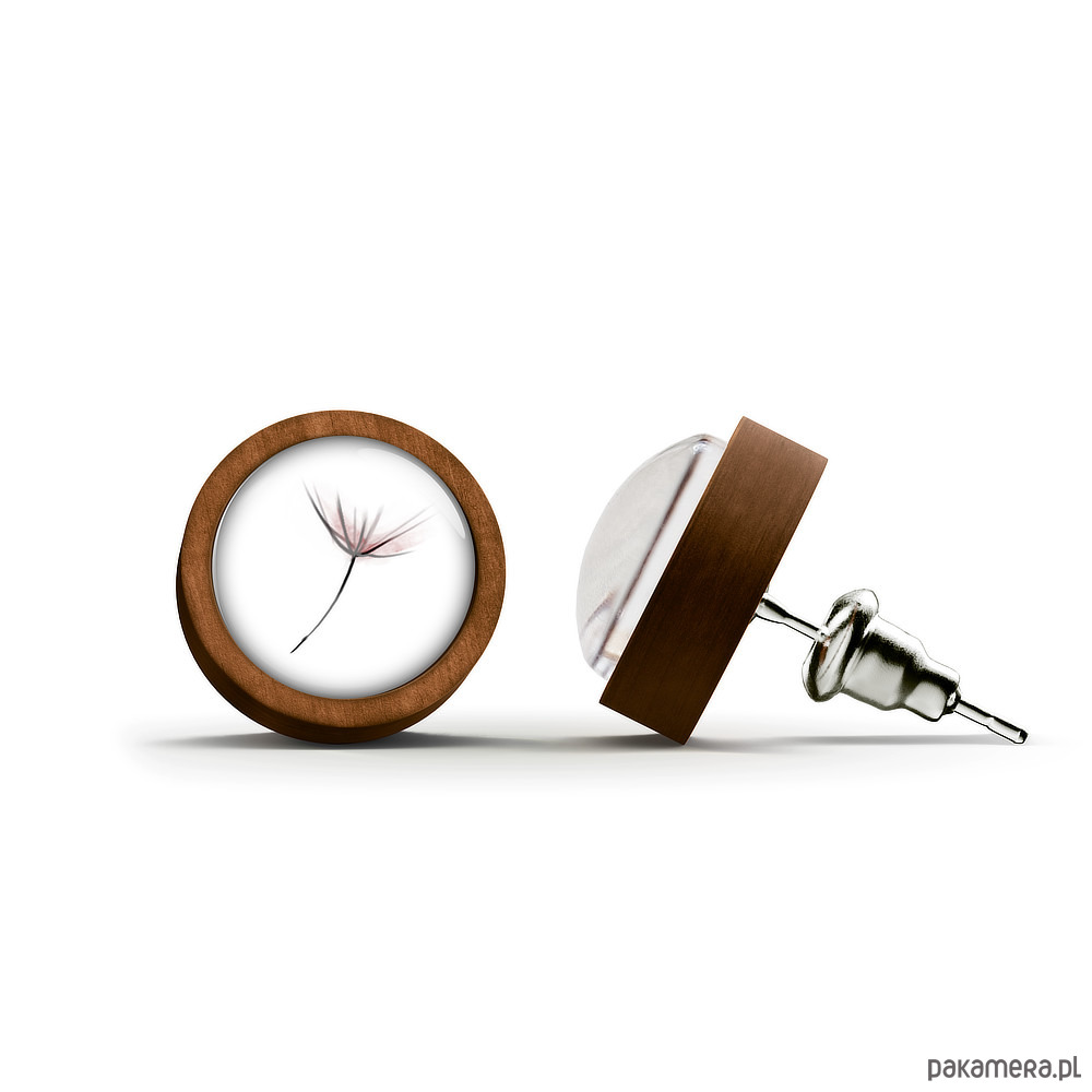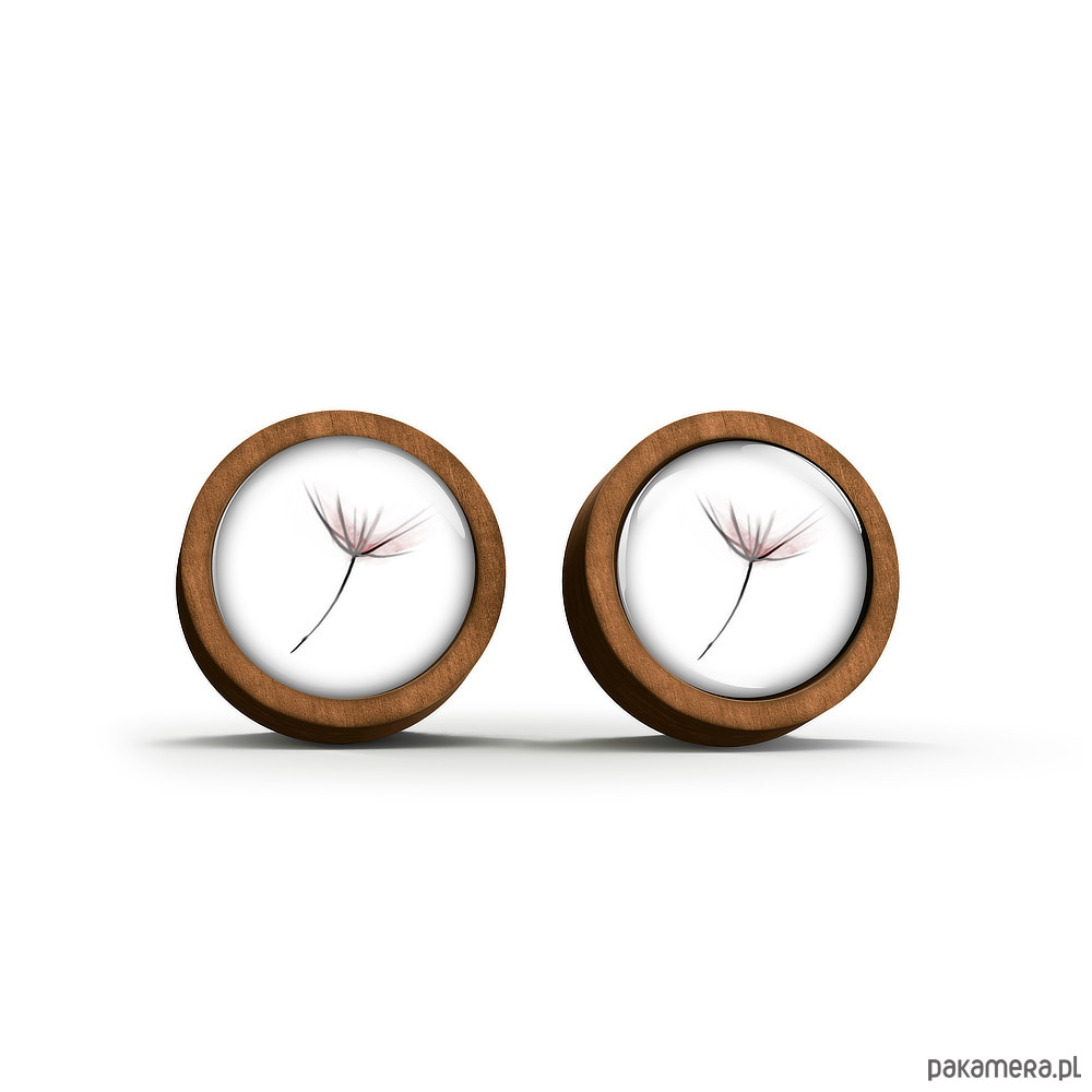 Kolczyki drewniane - Dmuchawiec - sztyfty