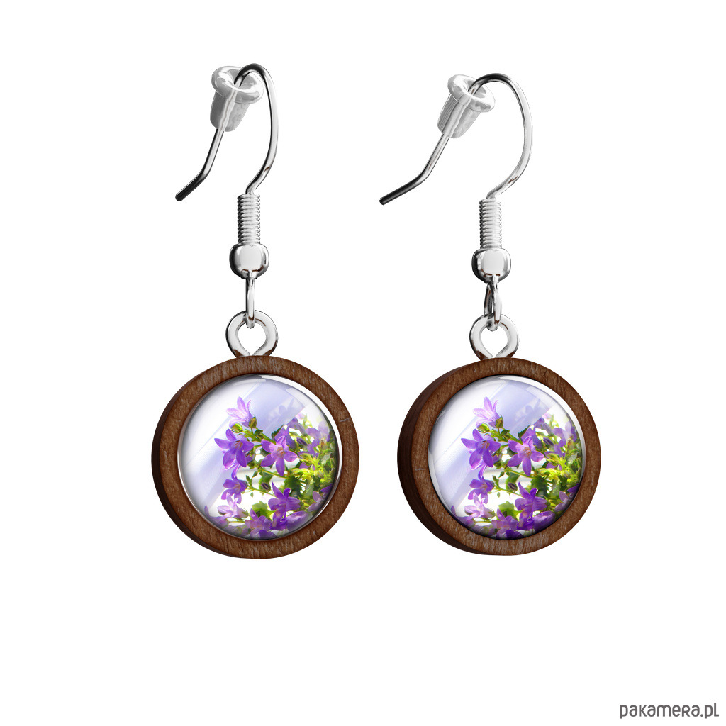 Kolczyki drewniane - Fioletowe kwiaty - wiszące