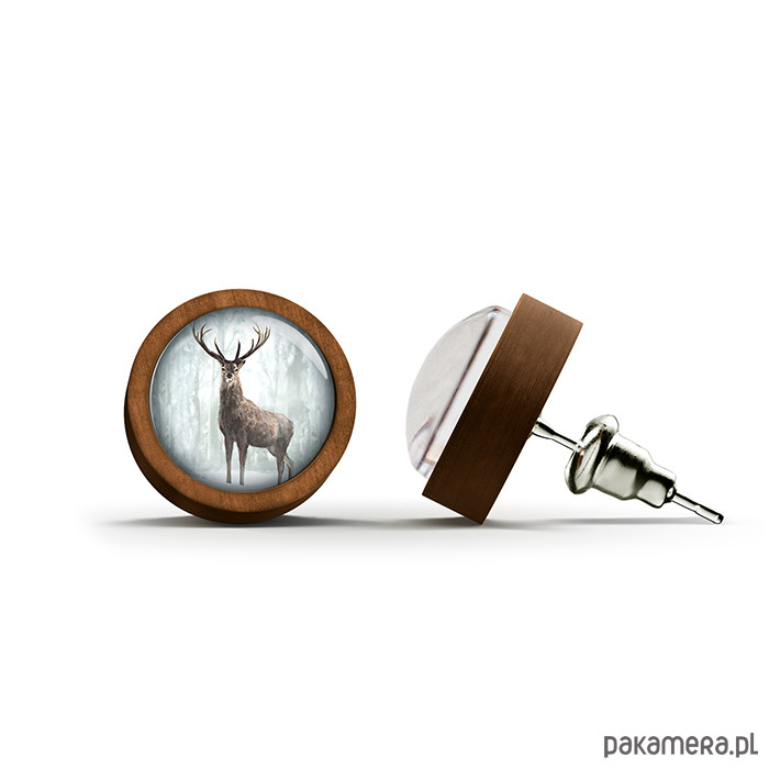 Kolczyki drewniane - Jeleń 3 - sztyfty