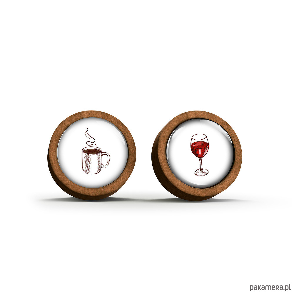 Kolczyki drewniane - Kawa i wino - sztyfty