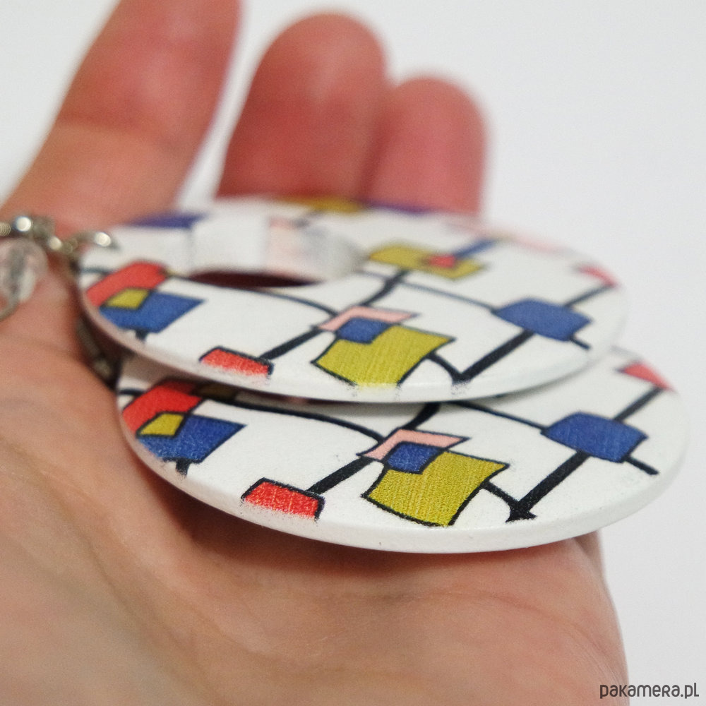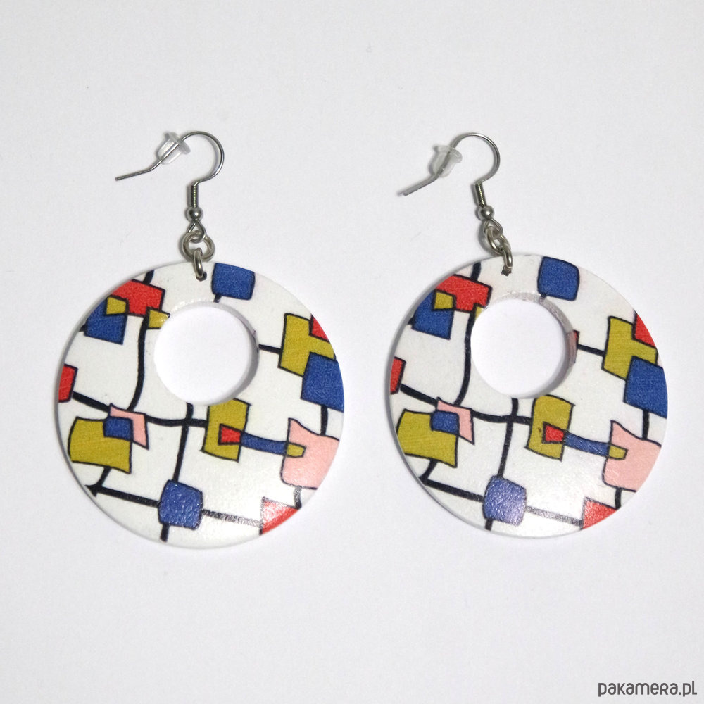 Średnica koła 5 cm, długość kolczyków ok.7,5 cm.