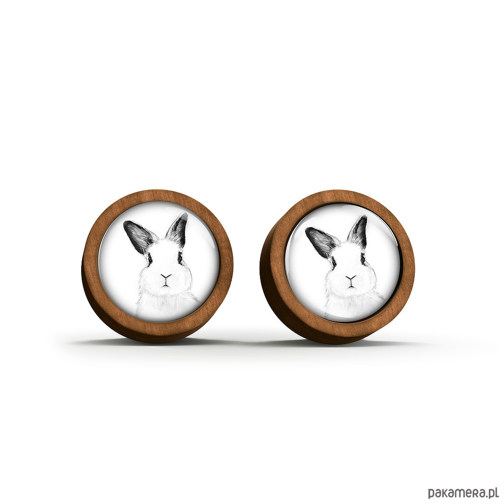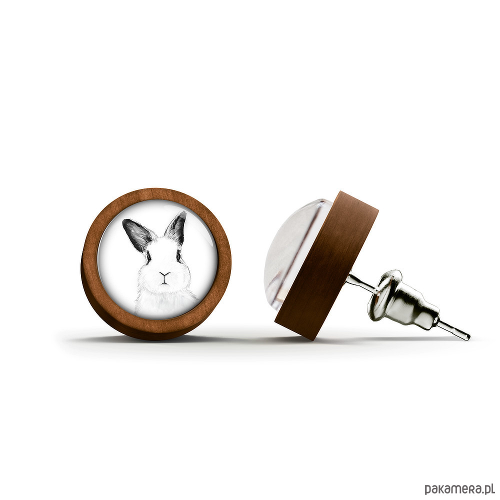 Kolczyki drewniane - Królik - sztyfty