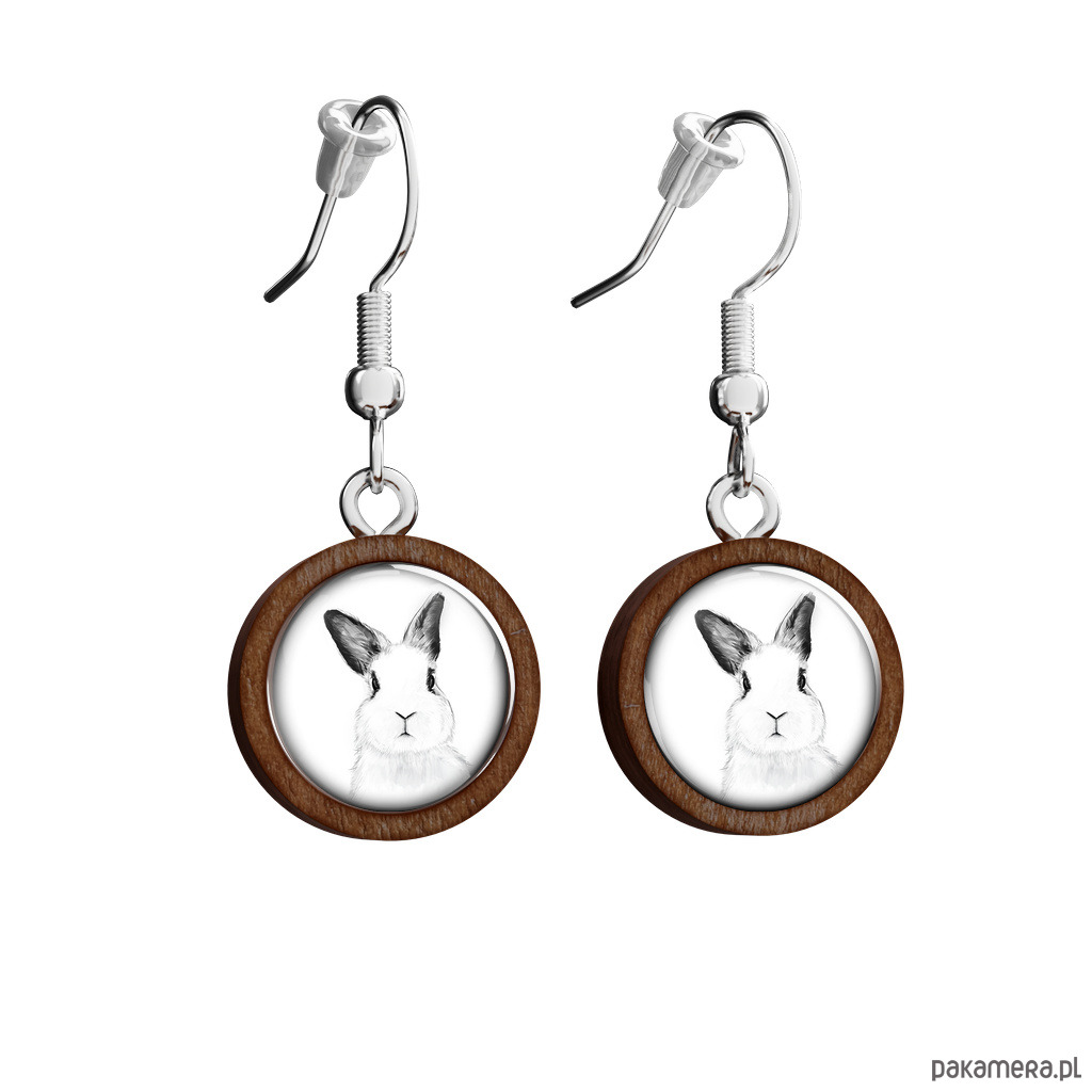 Kolczyki drewniane - Królik - wiszące