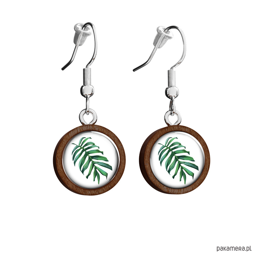 Kolczyki drewniane - Liść , monstera - wiszące