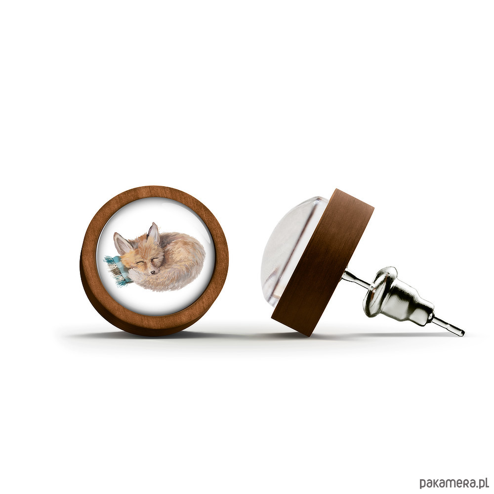 Kolczyki drewniane - Lisek - sztyfty