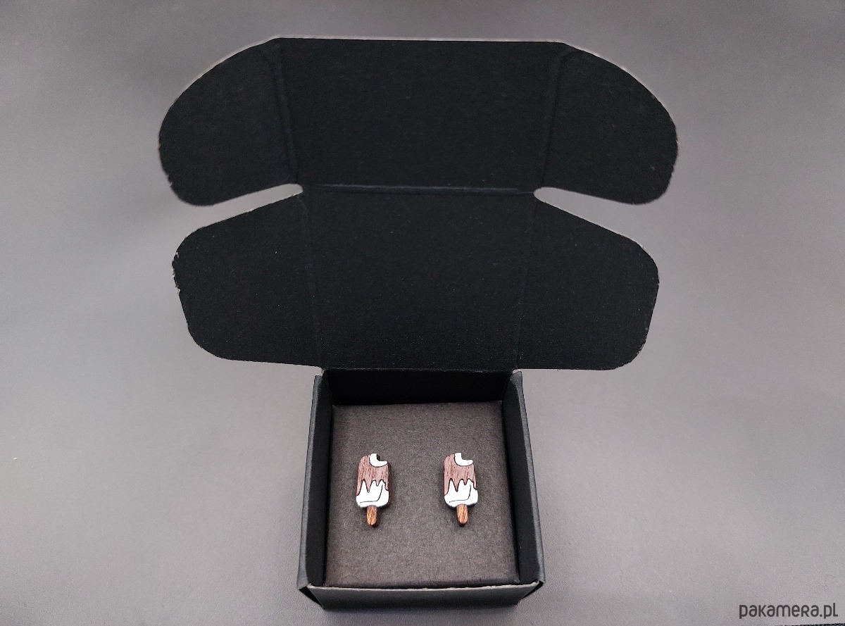 Kolczyki pakuję w kartonowe pudełeczko widoczne na zdjęciu.