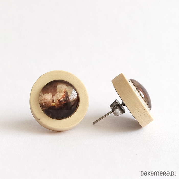Średnica miniaturki grafiki 12 mm. Średnica kolczyka ok. 18 mm.