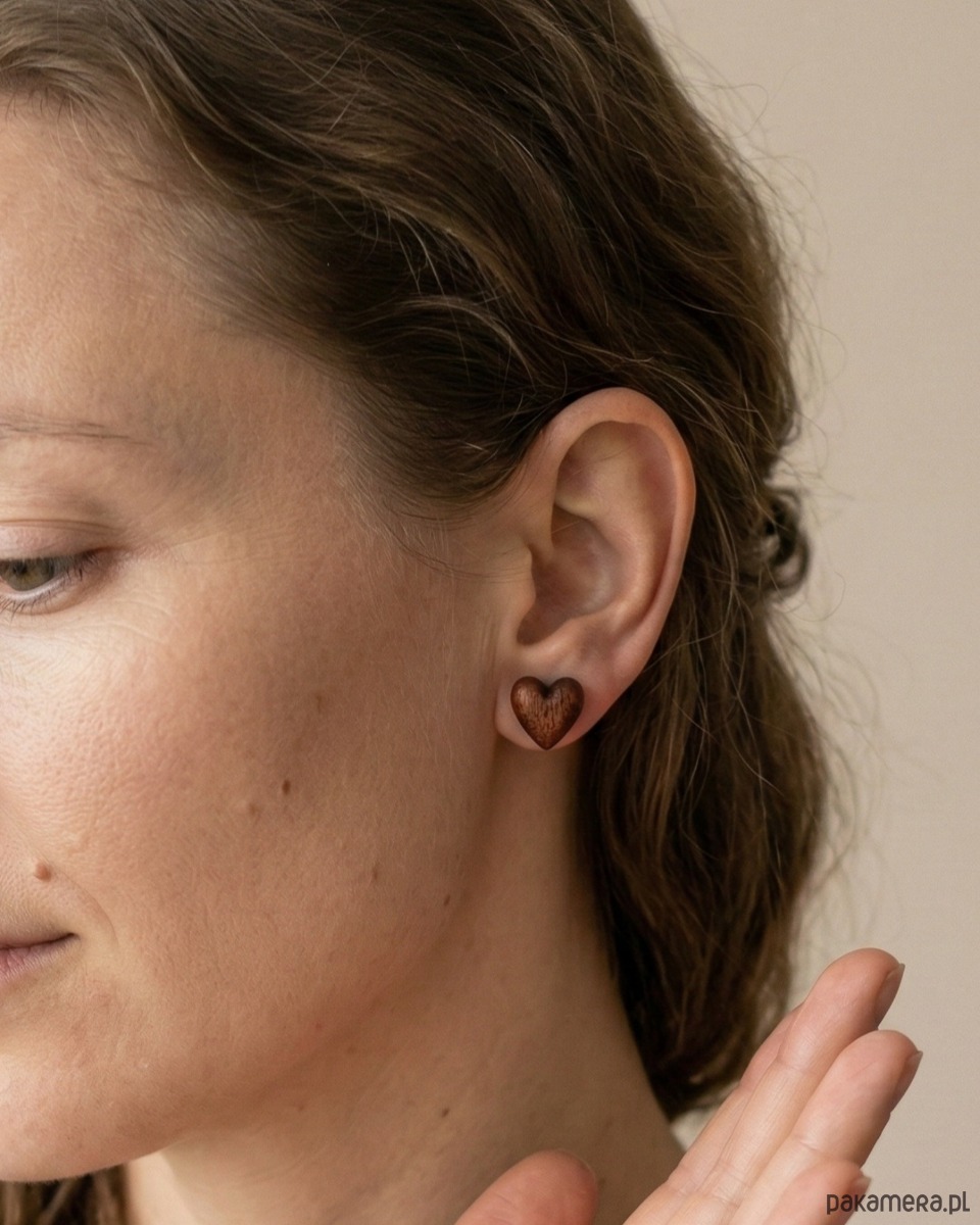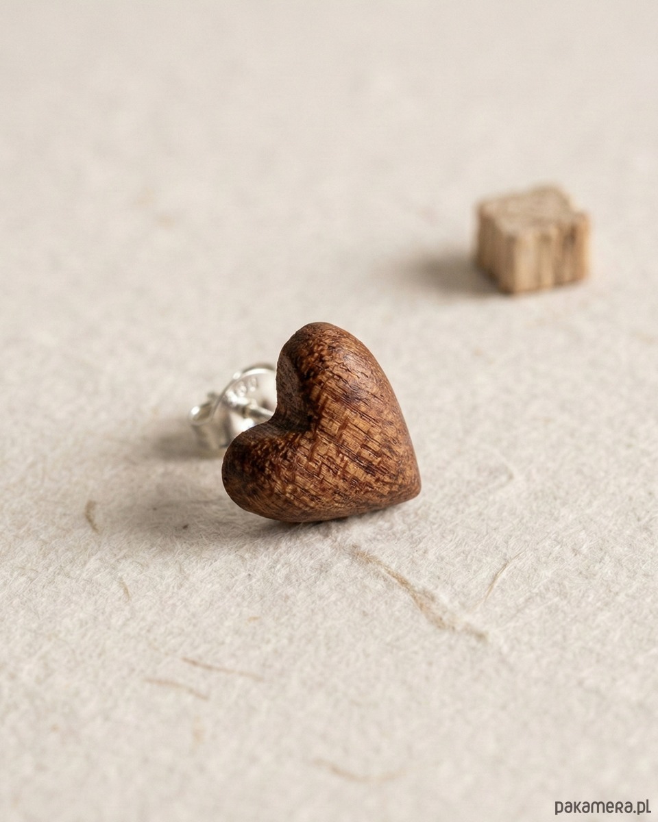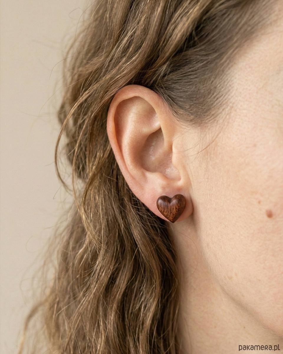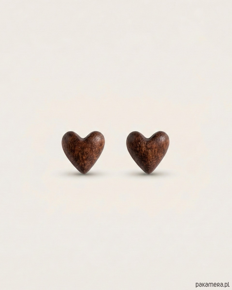Drewniane kolczyki w kształcie serca – to również idealny pomysł na prezent dla żony na 5, drewnianą rocznicę ślubu.