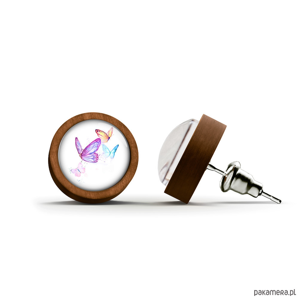 Kolczyki drewniane - Motyle - sztyfty