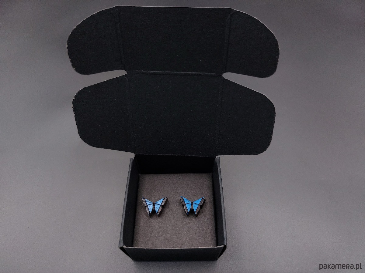 Kolczyki pakuję w kartonowe pudełeczko widoczne na zdjęciu.