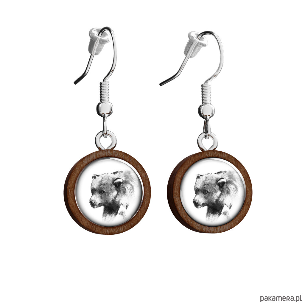 Kolczyki drewniane -Niedźwiedź - wiszące