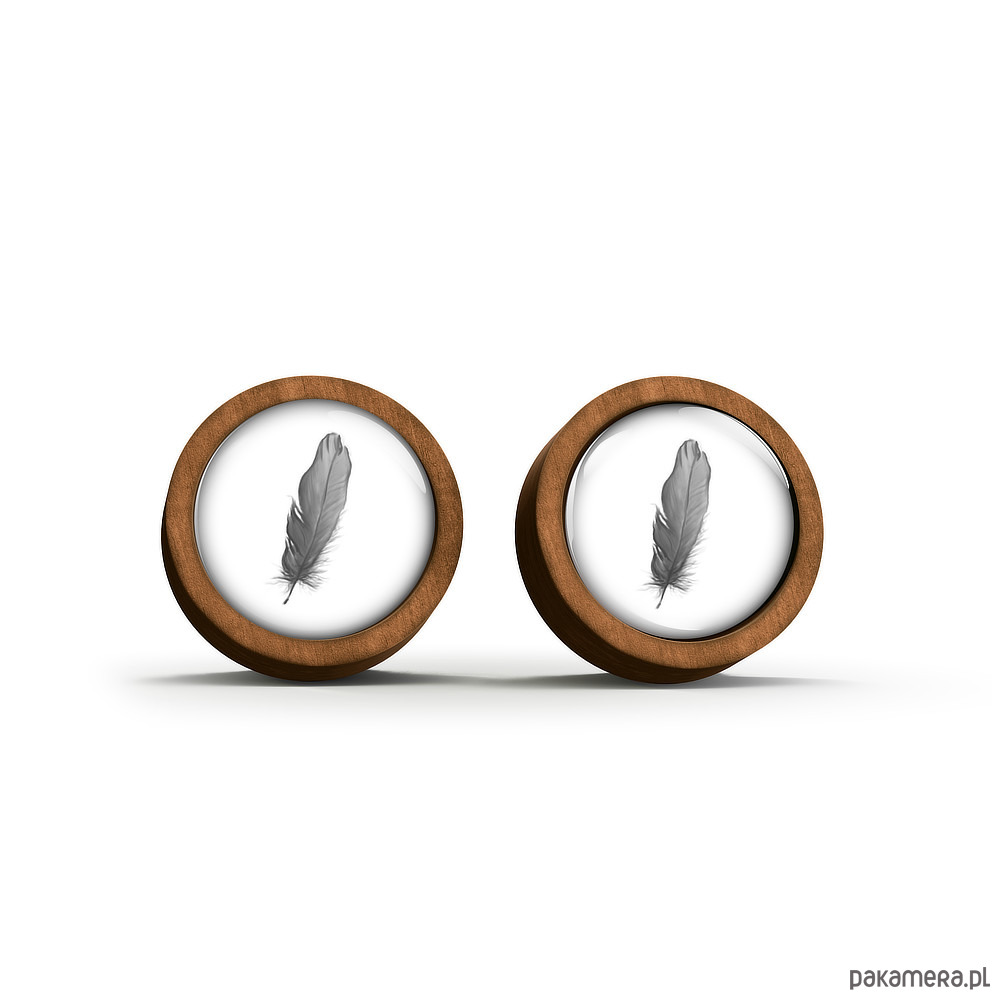Kolczyki drewniane - Piórko - sztyfty