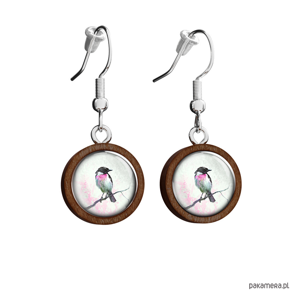 Kolczyki drewniane - Ptaszek - wiszące