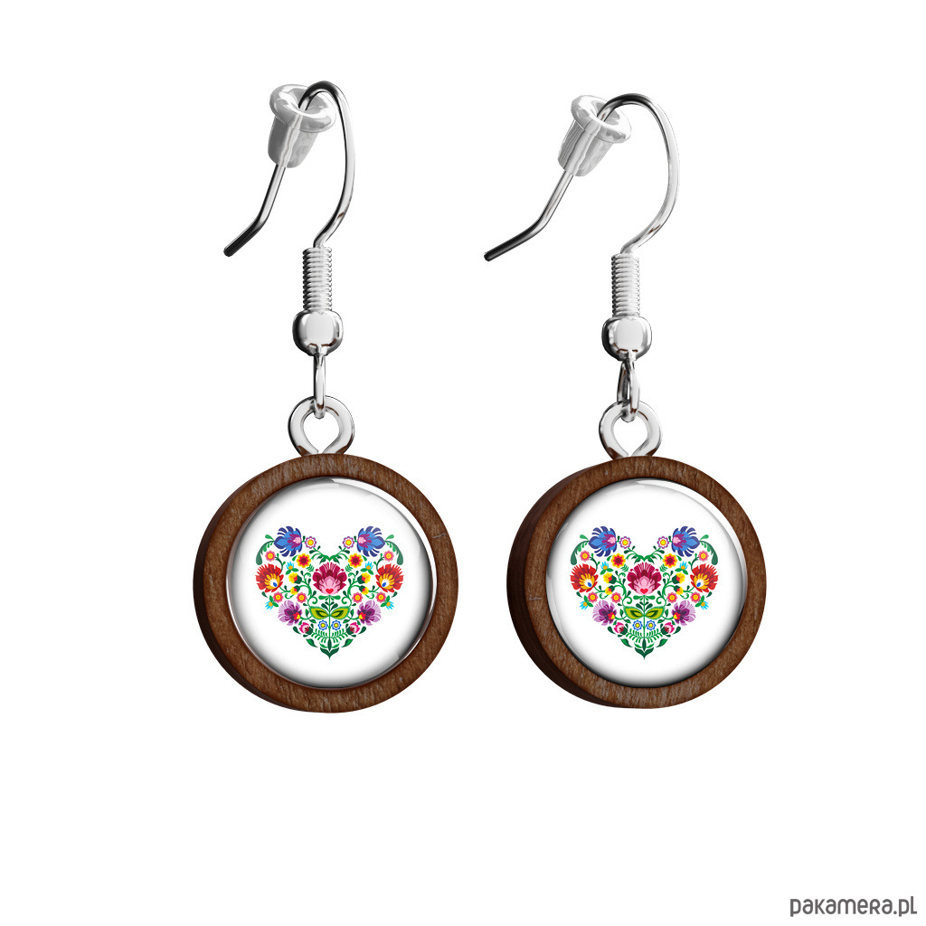 Kolczyki drewniane - Serce folkowe - wiszące