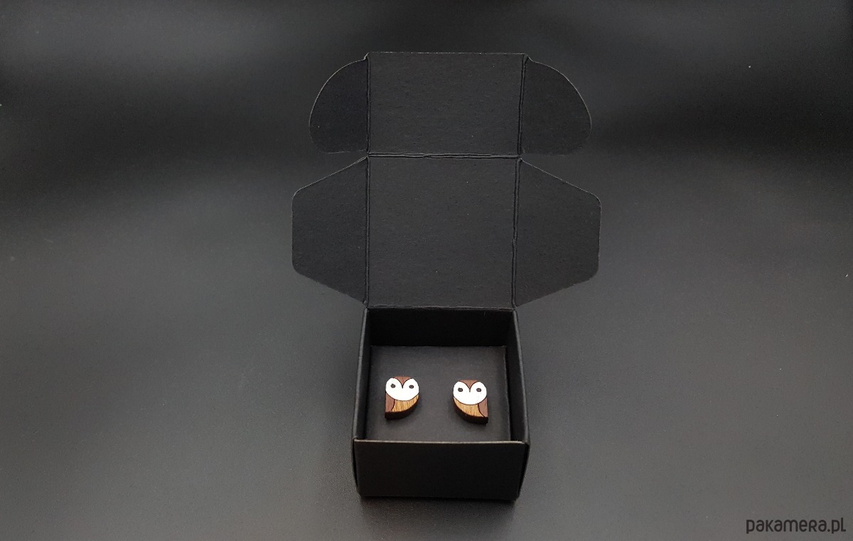 Kolczyki pakuję w kartonowe pudełeczko widoczne na zdjęciu.