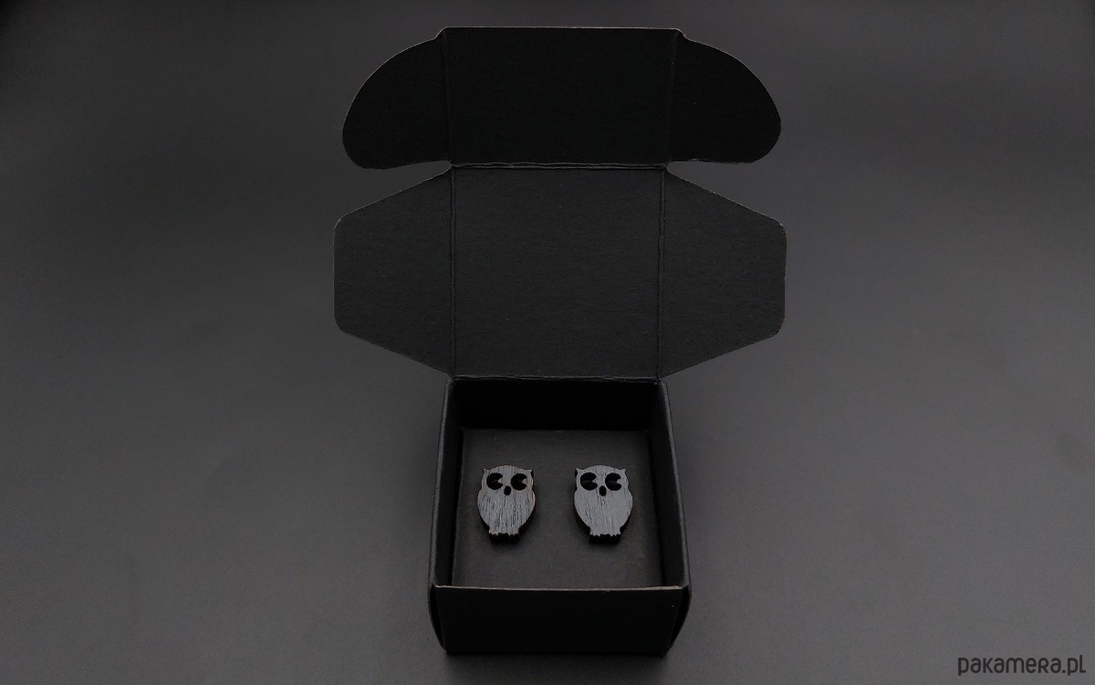 Kolczyki pakuję w kartonowe pudełeczko widoczne na zdjęciu.