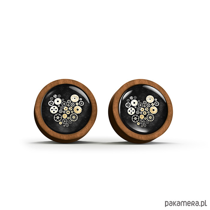Kolczyki drewniane - Steampunk 2 - sztyfty